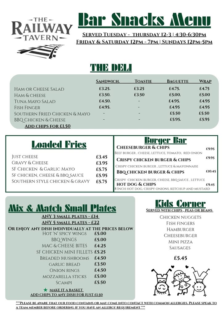 🚨 NEW MENU ALERT 🚨 Our brand new Bar Snacks Menu is landing this Friday 🙌 Just in time for the Bank Holiday Weekend… and trust us, you’re going to want to try this one 👀 🍔 Burger Bar favourites 🍟 Loaded fries (next level!) 🥪 Fresh deli sandwiches, baguettes & wraps 🍗 Mix & match small plates – perfect for sharing 👨👩👧 Kids options sorted too Whether you’re popping in for a quick bite or settling in for the day… we’ve got you covered 🤝 🔥 Launching this Friday at The Railway Tavern ☀️ Bank holiday plans = SORTED Tag who you’re bringing with you 👇